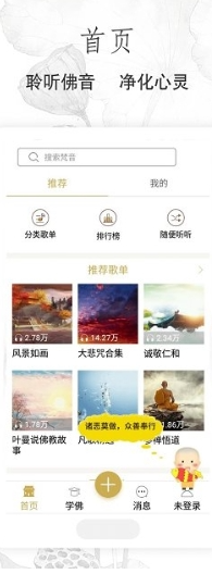 佛教音乐大悲咒 app 这是一款专门为喜欢佛教音乐人士提供的音乐服务 APP。为用户提供多种多样的佛教音乐,包括大悲咒、往生咒等等。可以提前将音乐下载到用户的后台,下次听音乐时就不需要消耗额外的流量。