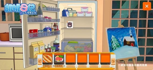 游戏内的时间与现实同步,所以要保证冰箱里有充足的食物哦,否则胡桃可要饿坏啦!到了晚上,胡桃会提醒你按时睡觉,要保持健康的作息呀!得到你精心照料的胡桃,会在吃完食物后,在冰箱内给你留下她的表情包,作为她的谢意,真是太可爱啦!