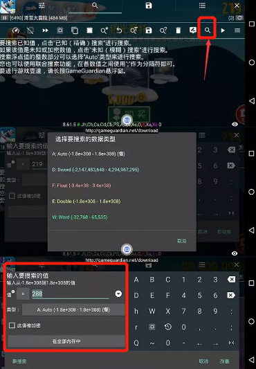 1,GG修改器打开游戏、进入关卡点已知、搜索10000