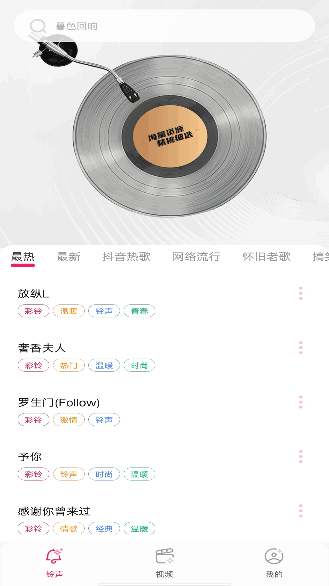 1.热门搜索热门词列表,了解当前最热门的铃声、音乐和铃声。