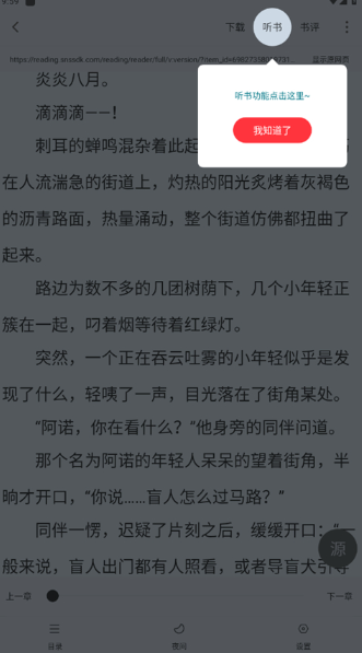 5、进入章节即可开始阅读,在上方可以选择听书功能