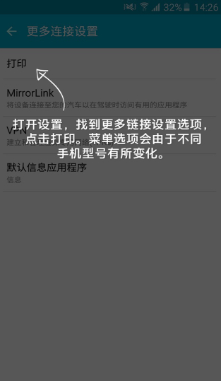 3、选择打印机,设置好打印选项,根据手机型号和打印机型号的不同,菜单选项会有一些不同。