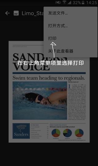 只需在打印时选择“打印”或“共享到 PSP”即可。只需点按菜单按钮即可显示打印选项。菜单按钮的位置可能有所不同,具体取决于 Android-; 设备的型号。
