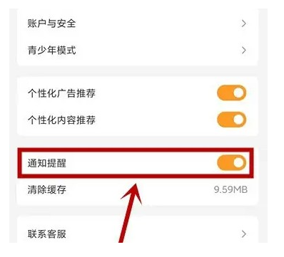 3、打开"通知提醒"控制按钮,这样就设置完成了。