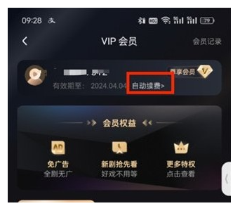 3、接着来到VIP会员的页面中,我们点击账号下方的【自动续费】按钮;