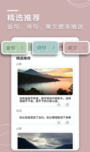 海量的金句,涵盖了文学好句、名言,每句还配有高清精美的图片