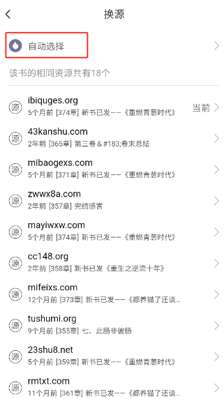 3、书源太多了,可以点击自动选择