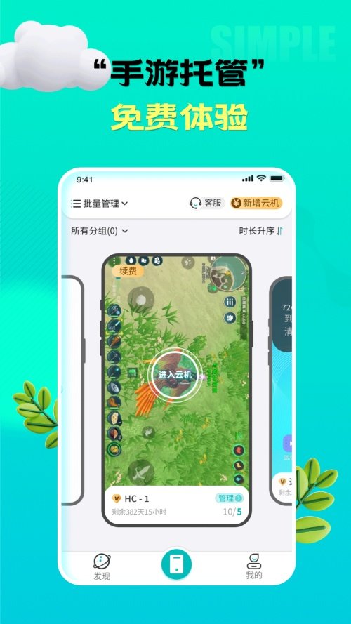 提供性能稳定且操作流畅方便的云手机;一部手机随时可预览云端手机状态,游戏、社交应用支持多开,大型3D手游多开组团下副本。