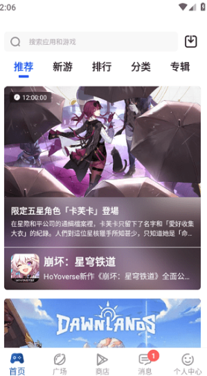 1、首次下载安装的用户,进入之后可以看到推荐、新游、排行、分类、专辑五大栏目;