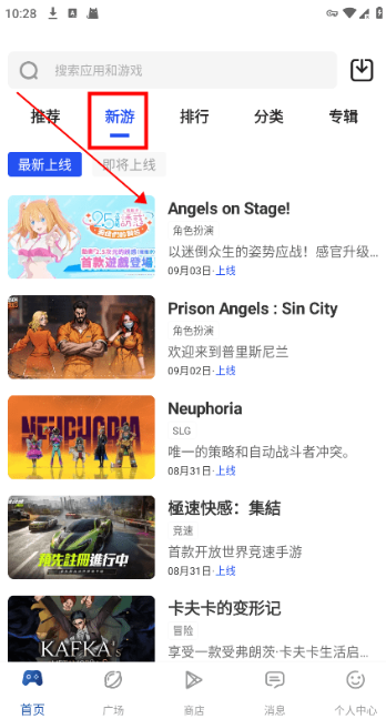 2、在新游栏目,可以看到最新上线游戏和即将上线游戏;