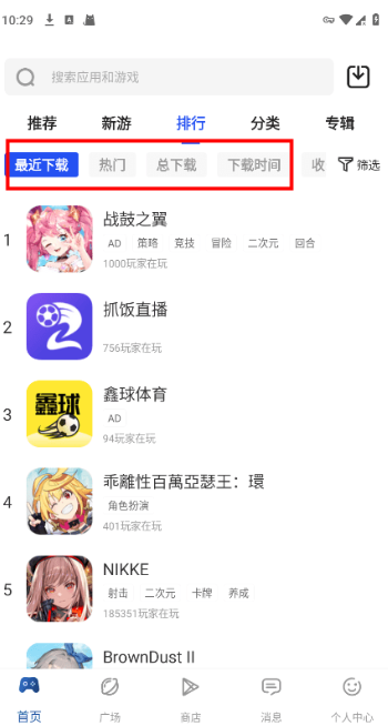 3、排行栏目,可以看到最近热门app和热门游戏,支持根据热门、总下载、下载时间来查询;