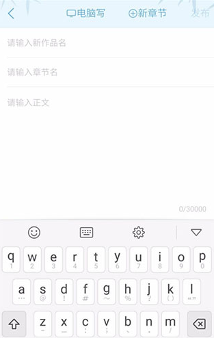 5、点击新写一本,可以看到作品名、章节、文章正文。