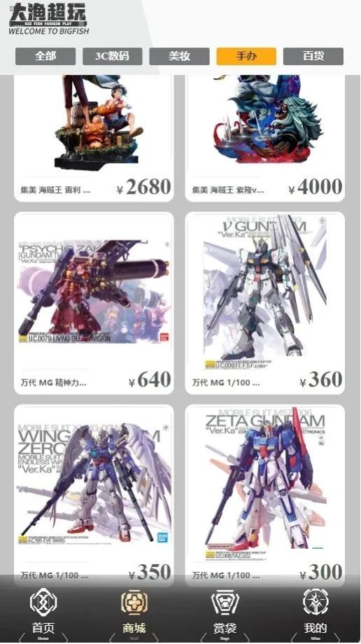 大渔超玩是一款受潮玩爱好者喜爱的购物商城软件,为用户提供了一个汇集丰富多样潮玩的购物平台。用户可以享受到价格优惠的正品潮玩商品购买服务,满足对潮流玩具和收藏品的需求。软件提供了海量的潮玩商品选择,包括热门的动漫手办、模型、盲盒、创意玩具等,涵盖了多种流行元素和主题,让用户能够找到自己喜爱的潮玩商品。商城中的商品都是正品保证,用户可以放心购买。