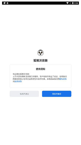 1、在本站下载安装狐猴浏览器手机版,接受用户协议。