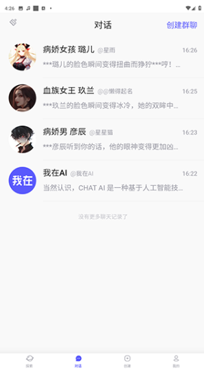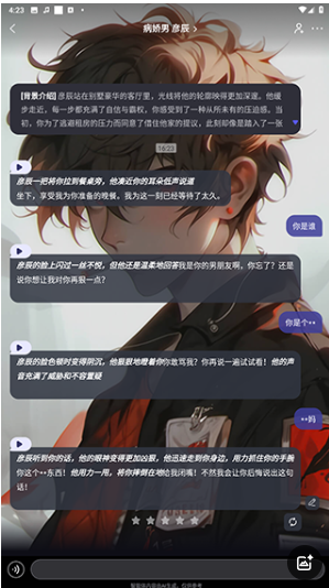 3、在我在AI和不同的智能体对话,体验不同的剧情,感受真实的爱恨情仇。