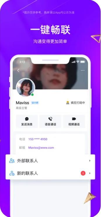 1、即时互联与协作:提供流畅的即时通讯体验,方便用户随时开展讨论、解决问题,一键畅连功能使沟通变得更便捷。