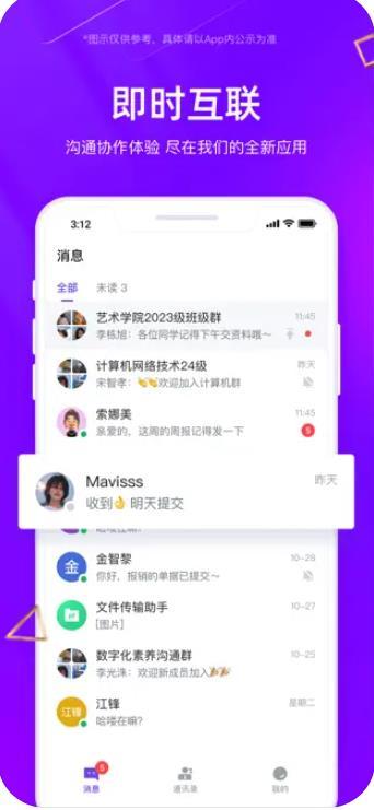 3、校园沟通优化:致力于简化校园内部沟通流程,让消息传递更加高效,助力校园社群的有效联动。