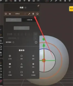 4、在“场景”下选框里找到类似垃圾桶的标志点击。