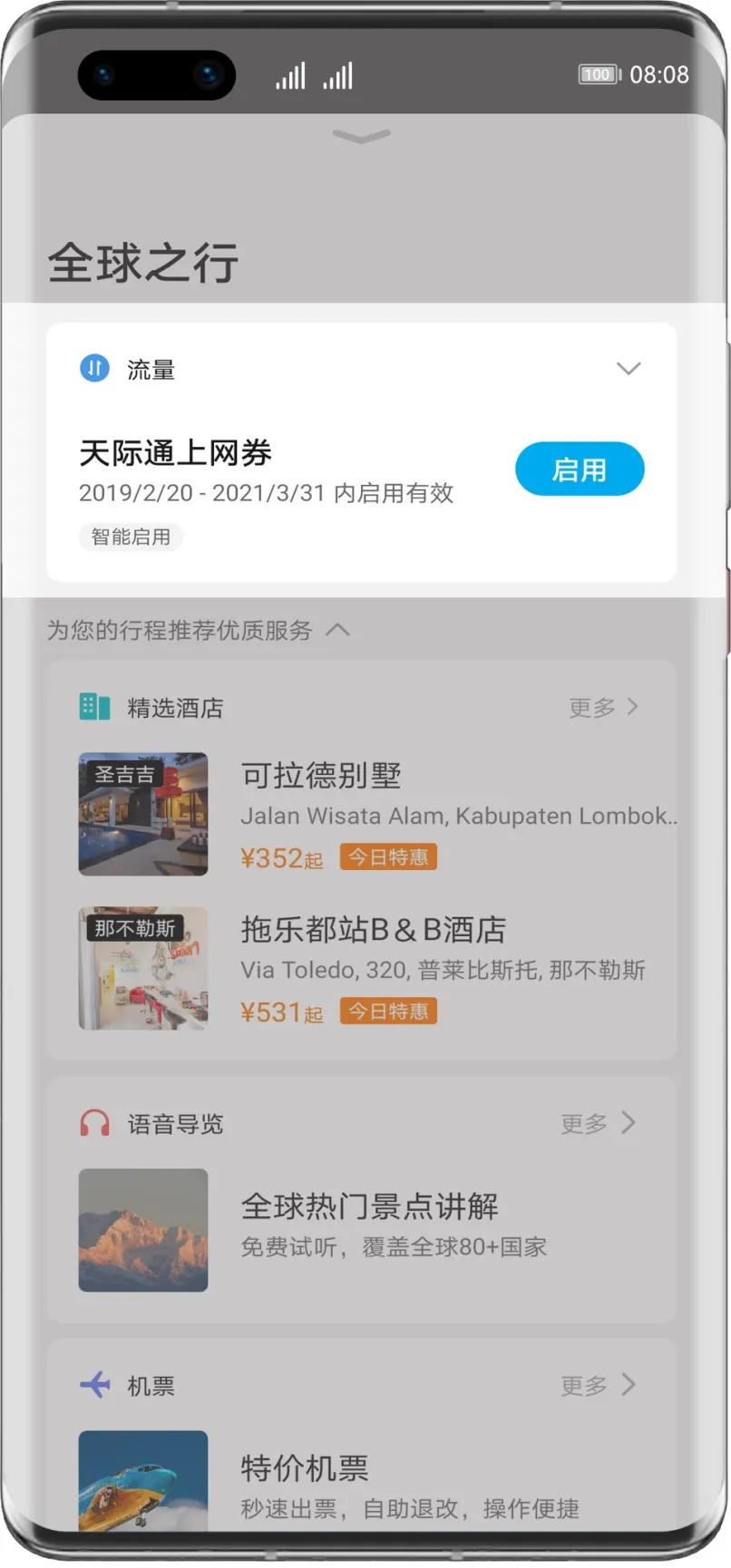 天际通是华为自主研发的一款上网应用(APP),为用户提供全球上网,及出行相关服务。