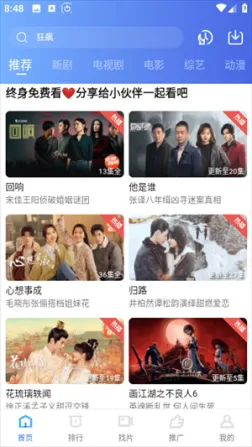 天天影视免费追剧的 APP 是那种特别适合所有喜欢看影视剧的人用的手机视频软件。这个软件不光把电影、电视剧、综艺、直播、动漫之类的好多影视资源都拢到一块儿了。并且呢,你能通过天天影视免费追剧 APP 的无广告版,顺顺当当就拿到各种正在热播的电视剧的最新剧集。