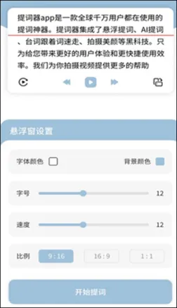 2、提词板模式设置:支持全屏提词、Ai智能语音提词、横屏旋转、字体及背景颜色调节等