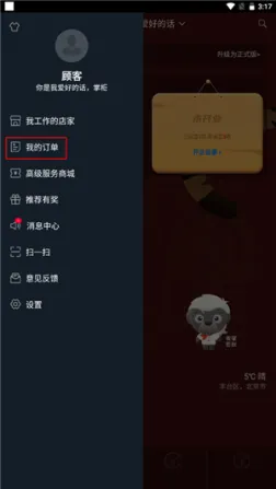 1、如果想查看客户下单的情况,点击主界面左上方显示的个人中心图标;