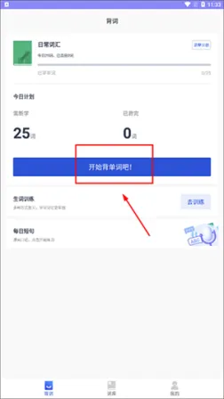 3、返回至首页,点击【开始背词】,即可开始进入每日计划学习。