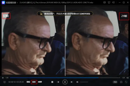 设置完成后(默认为60)通过点击视频左下方“插帧”字样,开启插帧功能,此时视频帧率将提高到设定值,在观看高速运动或帧率较低视频时获得更流畅的视觉效果。