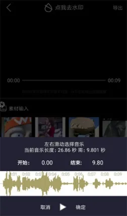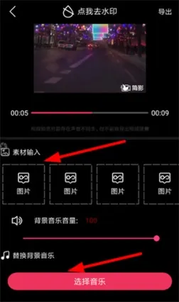 2、接下来需要滑动到下方使用“素材输入”功能,添加手机本地相册的图片素材,甚至是替换背景音乐;