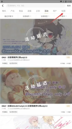 摊主及游客都可以选择自己喜欢的社团加入,也可以随时了解自己喜爱的画手作者属于哪个社团,在方便扫本的同时也能和作者拉近关系哦~