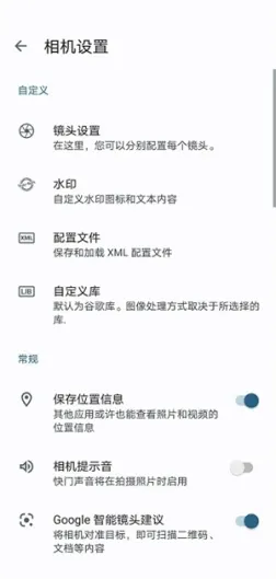 打开Google相机小米版,点击最上方的设置,点加载配置
