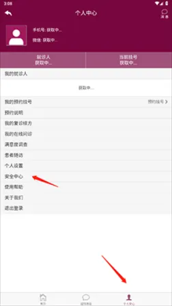 1、打开软件,点击底端的“个人中心”选项,然后点击“安全中心”选项。