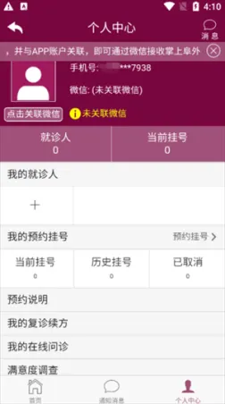 4、注册好了会自动登录进去,我们这时候就可以点击“我的就诊人”,添加一下个人信息了。