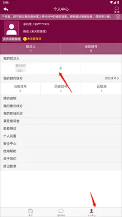 1、打开软件,点击底端的“个人中心”选项,然后点击“就诊人”选项。