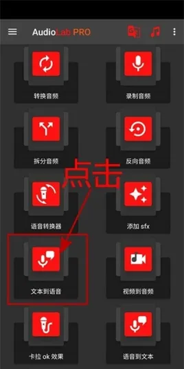 2、在AudioLab软件的首页中,点击“文本到语音”。