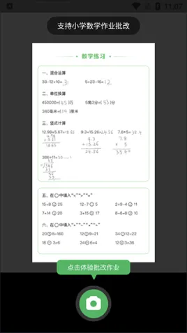 1、口算批改:手机拍摄数学口算作业,一秒完成检查。