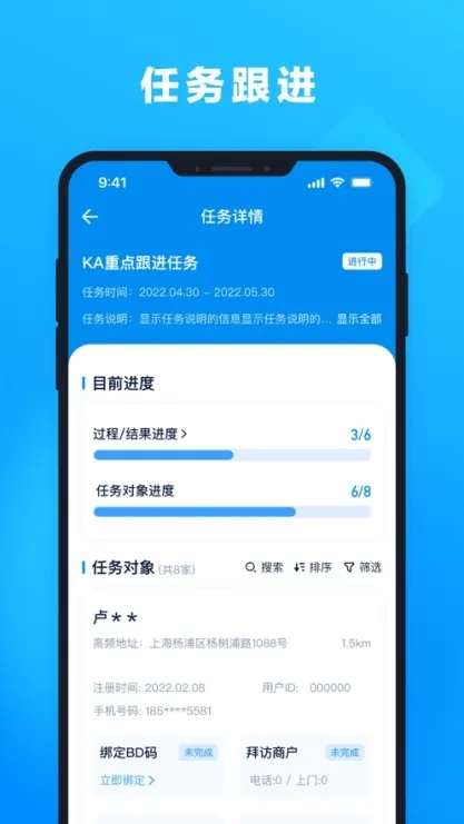 2、能够看到你每一个任务的具体详情,也可以去看到你的跟进对象。