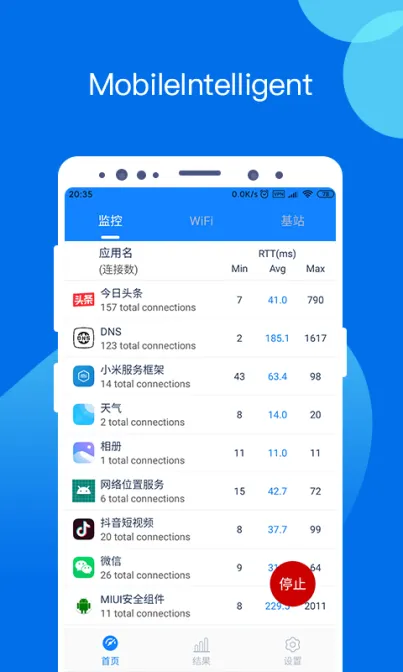MobileIntelligent致力于网络测量、检测和诊断,旨在帮助用户评估其个人网络状况,使每个人都能更高效、更快速地使用互联网。其主要功能包括: 1. 监测设备内应用的网络性能; 2. WiFi分析(信道图、信号强度变化、接入点分析、信道分析、局域网设备扫描); 3. 延迟测试(使用AcuteMon、ping、TCP等方法); 4. 带宽测试; 5. 路由追踪; 6. 基站信号分析。