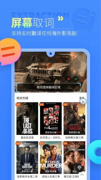3、简单易用的悬浮球一键全屏翻译,影视翻译轻松搞定,屏幕取词,支持实时翻译任何海外影视剧,功能强大超级好用。