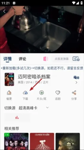 1、首先我们打开一个影视内容,在这里可以看到下载的功能。