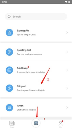 1、很多用户都想知道中国日报英文版怎么设置双语,其实不用设置,直接点击界面中间,进入Bilingual;
