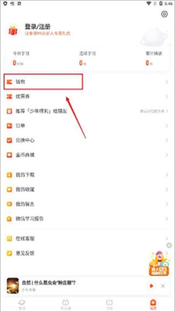 3、之后点击钱包选项;