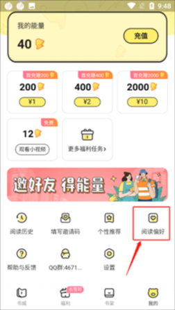 2、在我的页面下划中点击阅读偏好。