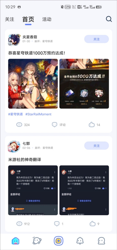 4、进入软件如图,玩家可在这里看到很多米哈游旗下游戏的资讯信息;