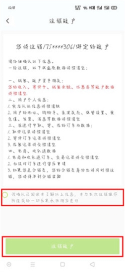 4、然后勾选“我确认已阅读……”,点击【注销账户】即可。