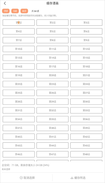 1、同样是在漫画详情页界面点击下方的“缓存”