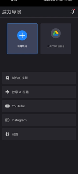 2、在首页当中,用户可以创建视频、查看教程、上传下载项目包等;