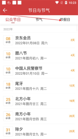 点进去之后会看到有“公众节日”、“节气”、“节假日”;