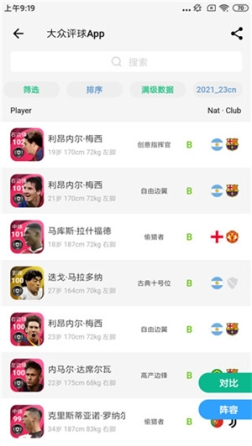 4、专为热爱足球的朋友设计;大众评级应用允许你在手机上轻松查看和比较足球能力值;