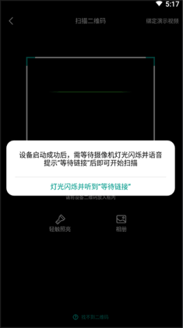 3、开启摄像机,听到语音提示,点击已听到等待连接。